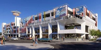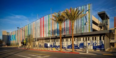 PCNA Group provided Architectural Code Analysis, Accessibility Analysis, and Fire Protection Engineering, including an Analysis of Fire Pump Requirements for this 7-tier open parking garage structure with approx. 1,600 parking spaces with tenant suites on ground floor located in downtown Las Vegas, including a vehicular bridge that spans over Union Pacific railroad and connects to the City of Las Vegas City Hall parking garage.
