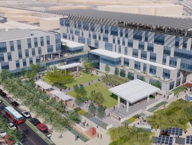 PCNA Group provided Code Consulting, Accessibility Analysis, Egress Design, and Fire Protection Engineering the design and construction of a 6-story above-grade mixed-use mid-rise building on an approximately 3.5-acre site. The overall site build-out also included an outdoor performance plaza with covered stages and artificial lawn landscaping that is partially covered with a cantilevered shade structure/outdoor performance stage that occurs at the north end of the courtyard.